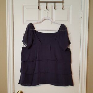Jacques Vert Women's Double Silky Layer Ruffle Top ~ Size XL (16) (tags removed) ~ Navy Blue ~ EUC ~ Originally over $150! ~