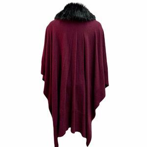 Jacques Vert plum burgundy Wool Cashmere Poncho cape shawl faux fur trim ribbon