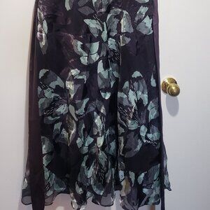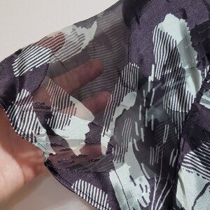 51" long, 20" (stretched under arms), 20" hip stretched, 15" waist. Viscose/Silk blend. Excellent condition, never worn. Shades of mint green and purple.