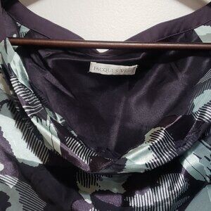 Jacques Vert long dress, sheer bell sleeves. Fully lined in purple satin, belt accent. Dress has lots of stretch and can fit small to large.