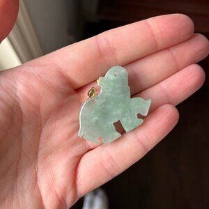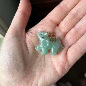 Chain not included. 12 gram green jade carved elephant pendant with Sapphire Accent 14k Yellow Gold. This Lucky Elephant Charm Pendant will look beautiful on a gold chain. I have owned this piece for about 15 years but no longer wear it.