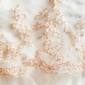 Jade Daniels Ivory Pink Beaded Lace Accent Strappless High Low Dress M