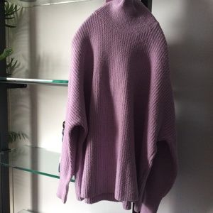 Jade Sweater is rendered in a buttery soft rib knit with a tall turtleneck and banded edges, all in a lush lavender hue.
