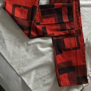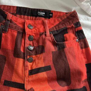 Jaded London Tomato-Red & Black Abstract Print Cotton Boyfriend Jeans – US 0