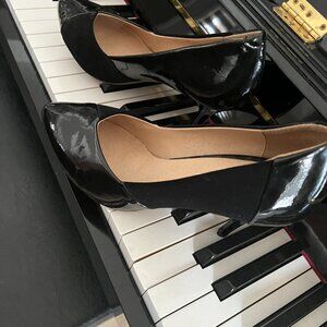 Beautiful suede and patent heels in like new condition. Worn only twice -- they are a bit too high for me. These shoes are black, size 8.