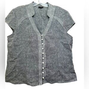 Jaeger Linen Top Button Up Cap Sleeves Jacket Minimalist Lightweight Neutral 14