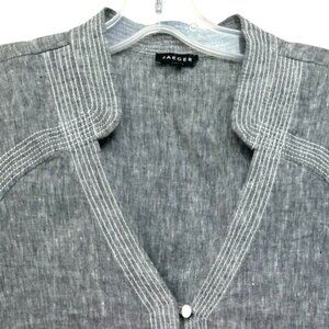 Jaeger Linen Top Button Up Cap Sleeves Jacket Minimalist Lightweight Neutral
