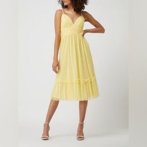 Perfect for a spring fling, formal, grad or prom. Sweet polka dot lace overlay, bright and beautiful yellow.