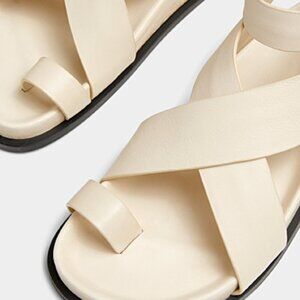 Sandals equipped with a toe strap and a wide crisscross leather strap in light beige.