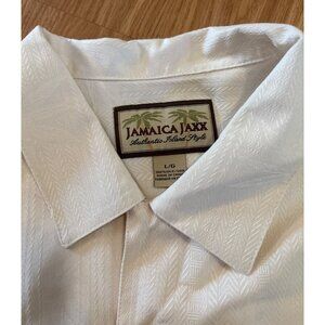 Jamaica Jaxx Shirt Mens White Jacquard Floral 100% Silk Short Sleeve Button-Lrg