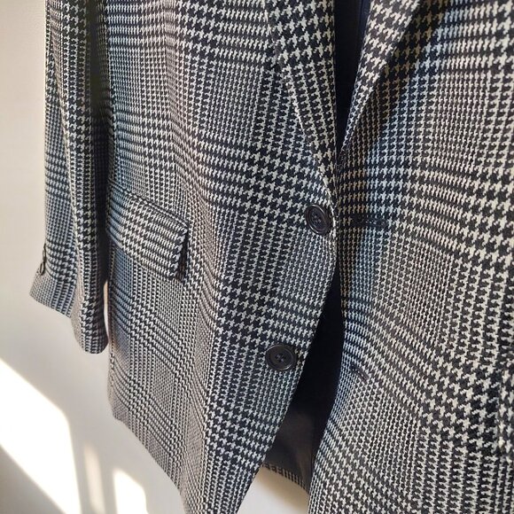 James Alexander Men's Blazer Jacket, Black White Paid , Wool Blend, Size 40/102