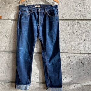 100% cotton, dry aged and cured, Dry Indigo Wash, Travis Model, straight leg jeans in almost new condition. My husband bought these jeans because he wanted them really badly but they always fit a little too loose on his waist. Excellent condition and no damage to note. Can be worn with cuff turned down or up (your preference). ✨ Please feel free to request measurements you may need or send questions you have before purchasing. ✨