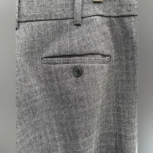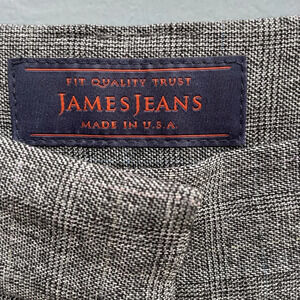 Fixed cuffs and a slouchy silhouette relax the polished feel of plaid James Jeans trousers. Slant hip pockets and button-welt back pockets. Hook-and-eye closure and zip fly.