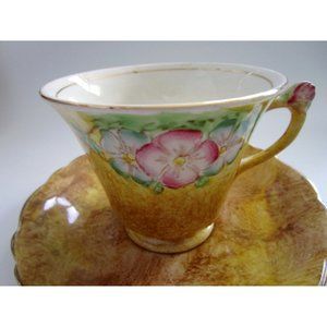 James Kent Longton England Brown Cup & Saucer & Flower Handle #2184 VTG - *READ*