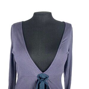 James Perse Los Angeles Purple Low Deep V Neck Front Back Tie T Shirt SZ 1