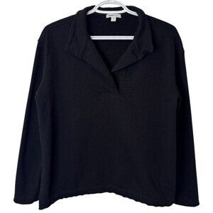 A James Perse Long Sleeve Cotton Sweatshirt. It embodies the brand's signature laid-back California aesthetic, offering a blend of comfort and understated luxury. Features a distinctive polo-style collar with a V-neck placket, and long sleeves. This piece is designed as a high-quality basic that can be effortlessly styled for various casual occasions or as a layering piece.