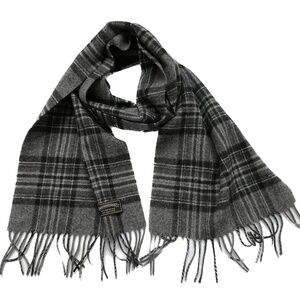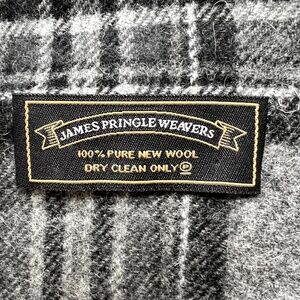 James Pringle Scarf 100% Pure New Wool Black Gray Plaid Rectangle 11" x 60"