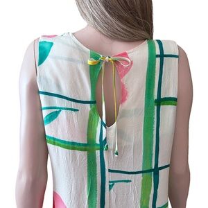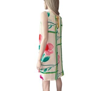 James World Floral Shift Dress Flower Box Colourful 100% Rayon Sleeveless RARE