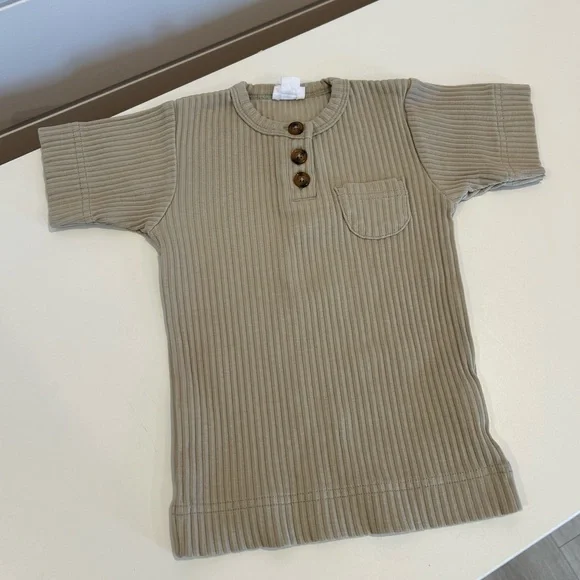 Chic ribbed shirt with button accents. Features a handy front pocket. Ideal for everyday wear.