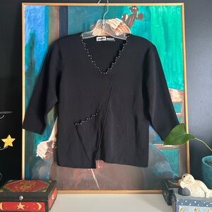 Chic black knit top with subtle embellishments. Perfect for stylish layering.