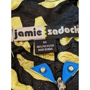 The Jamie Sadock Golf Top Cooltrex Women's XS Activewear Quarter Zip SPF Pickleball is a stylish and functional piece of clothing designed for active women. Featuring a quarter zip closure, band collar neckline, and side slits, this top offers a comfortable fit and easy movement. Made of lightweight polyester material with SPF protection, it is suitable for all seasons and activities like tennis, golf, and pickleball. The abstract pattern and colorful design add a touch of artsy flair to this classic and bold piece, making it a versatile choice for both casual and activewear occasions