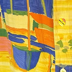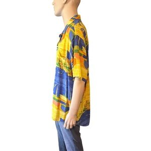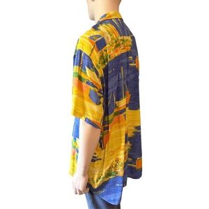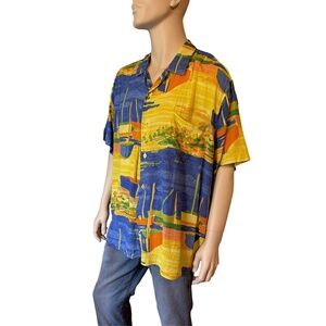 Jams World 100% Rayon Hawaiian Shirt Top Casual Tiki Full Button Front Colorful