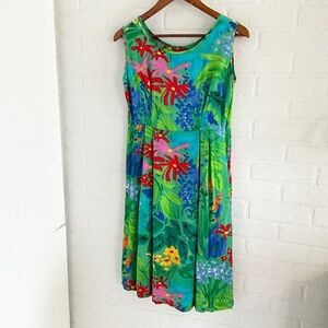 Jams World Dress Natalie Sea Flower Tropical Aloha Hawaii Beach Pockets Green S