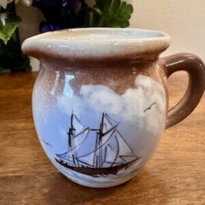 Jan Blair Canadian Pottery Pitcher Signed‎ Hand Painted Ship Vintage Maritime