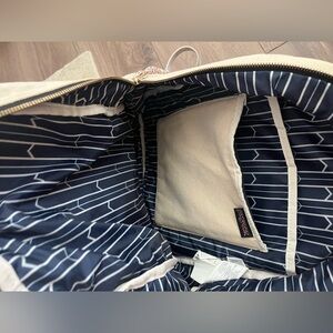 Minor markings Stylish and durable, this JanSport backpack in cream is perfect for everyday use. Its spacious design and comfortable straps make it ideal for carrying all your essentials.