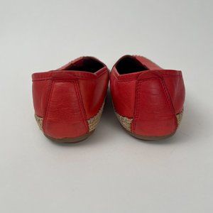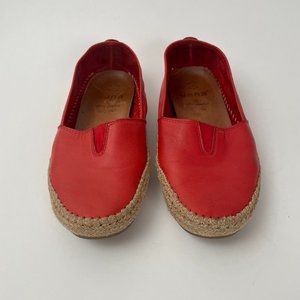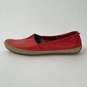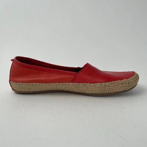 Jana Red Orange Leather Espadrille Slip On Flats, Size 9.5 (EU41)