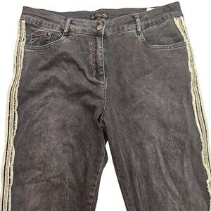 Jane & John Womens Jeans Mid Rise Black Denim With Frayed Side Stripes Size 12