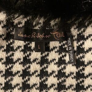 Jane and John L black & white houndstooth wrap belt jacket with faux fur