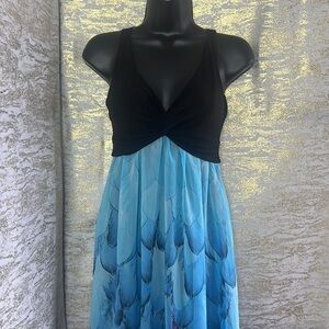 Janette John 3:16 Womenโs Peacock Feather Print Chiffon Maxi Dress Size S