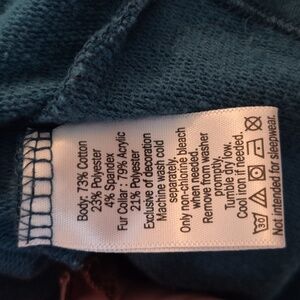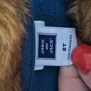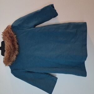 This is a beautiful and cozy Janie and Jack dress, perfect for fall and winter! Made from a soft, teal jersey material, it features a plush faux fur collar for a touch of elegance and warmth. The dress has two front pockets with brown faux suede adding a charming detail. It's a size 2, in excellent pre-owned condition with no stains, rips, or tears. Ideal for special occasions, holidays, or just a stylish everyday outfit.