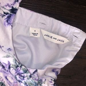 This is a beautiful Janie & Jack girls size 4 dress. The puff sleeve and ruffle trim provides an elegant style. Colors look beautiful for Spring, yet versatile dress in the winter when paired with black tights. Lightly worn once and in great condition.