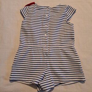 Janie and Jack girls size 6 white with blue stripe romper. Red shoulder bow