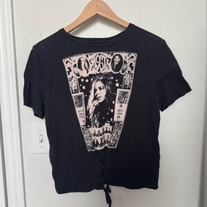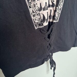 Janis Joplin groovy lace up Black Graphic Women's Top XS oversized goth y2k