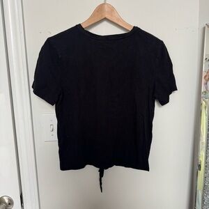 Stylish black graphic top featuring a unique design. Perfect for casual outings.