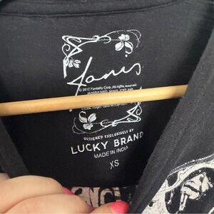 Janis Joplin groovy lace up Black Graphic Women's Top XS oversized goth y2k