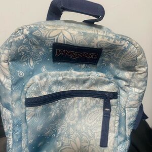 Chic light blue backpack with floral design. Ideal for everyday use.