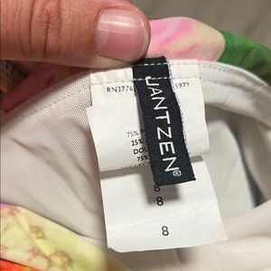 Stylish Jantzen bikini with vibrant floral design. Includes matching skirt. Ideal for summer fun.