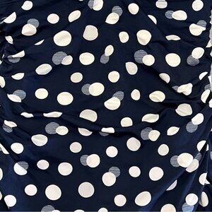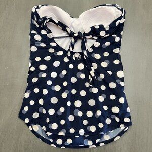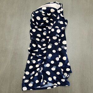 Jantzen Navy Blue & White Polka Dot Strapless Shirred Ruche One Piece Swimsuit 8