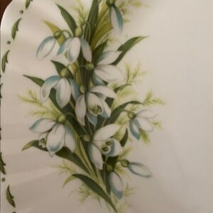 Elegant white plate with delicate ❄️ snowdrop design. Great gift for the January birthday or other special occasion. Great condition. Vintage. 8 inch diameter. Gold rimmed.