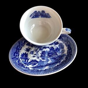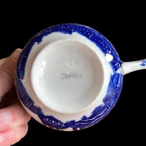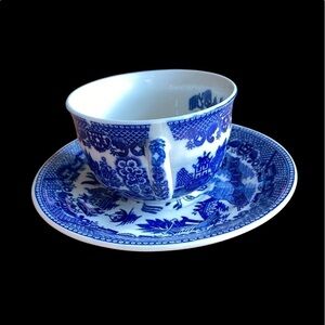 Japan Flow Blue Willow Transfer pattern fine porcelain cup and saucer Vintage
