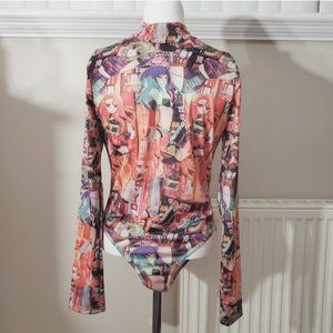 Japanese Anime-Manga Graphic Print Mock Neck Bodysuit Onesie- Size Small