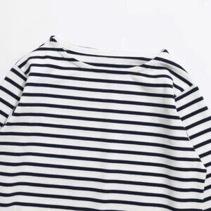 Japanese Black And White Striped Boat Neck T-Shirt - Siz S