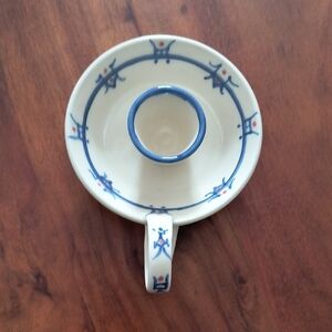 Japanese Ceramic Candle Holders with Blue and Red Accents