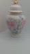 Elegant ceramic jar with a floral design, perfect for adding a touch of charm to your home decor. Features a beautiful combination of pink and blue flowers on a white background, accented with a gold rim.