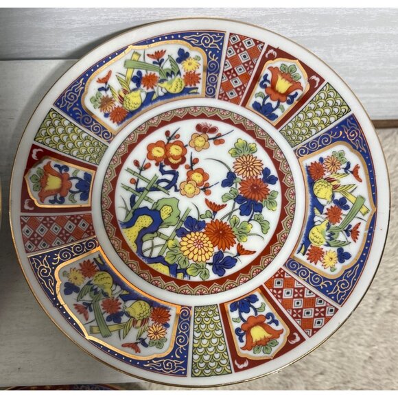 Japanese Imari Plates With Floral & Bird Designs 6.25" Set Of 3 Vintage