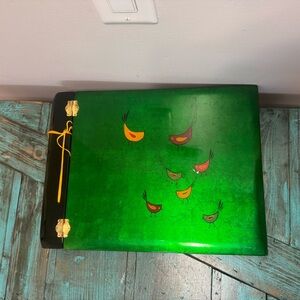 This vintage Japanese lacquer hand-painted scrapbook photo album is a unique and handmade collectible from Japan. Featuring intricate designs and artwork typical of Japanese culture, this personalized album serves as a timeless keepsake for photography enthusiasts and collectors alike. With its origins in the traditional craftsmanship of Japan, this photo album captures a piece of the country's rich history and aesthetic beauty.